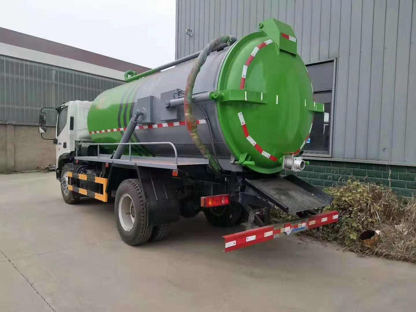该车用途为吸污,主要装置为污罐;罐体有效容积:7.28立方米,运输品名:液态污物,罐体尺寸(mm):直段长4100,直径1500;防护材料:Q235A碳钢,连接方式:左右侧面及后下部防护均采用焊接连接,后部防护断面尺寸(mm):150×50,后部防护离地高度(mm):480.整车长/轴距对应关系为(mm):6950/3800,7350/4200;ABS控制方式为4S/4M,ABS型号为CM4XL-4S/4M,生产厂家为广州瑞立科密汽车电子股份有限公司;选装车辆后部图片.