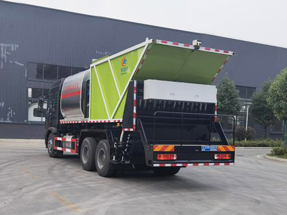 具有自主知识产权的同步碎石封层车。达到了机、电、液合一化操作,