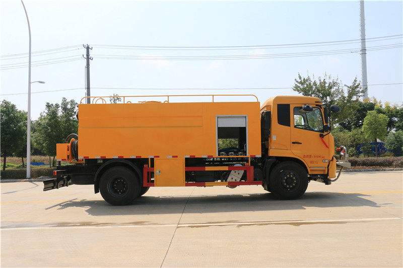 容积约12立方米,水罐采用武钢优质钢板制作,壁厚4个厚,罐体中间合理设计防浪板,罐体上面设计检查人孔,也当可加水孔用,带水位量管,水箱进水口为球阀式消防栓,左右各一个(方便开关,经久耐用),带消防接口,带洗手法阀,带低水位排水功能,高压泵采用德国品孚215流量型号,22兆帕压力,自主研发大过滤器(防止杂质进泵),带气吹水功能(冬季可把高压泵,高压管的水吹干净,防止冻坏),后高压卷盘液压放管收管,带淋管功能(高压管作业后,往回收时,可以冲洗高压管),尾部大卷盘,卷盘加大加厚加固,可160度旋转, 操作系统均整齐排列,均有操作说明及注意事项,带2个工具箱,带卷帘门(方便高压泵保养检修),车辆采用镀锌防护网,花纹防滑护栏(美观耐用)。可加装洒水功能,电子水炮等