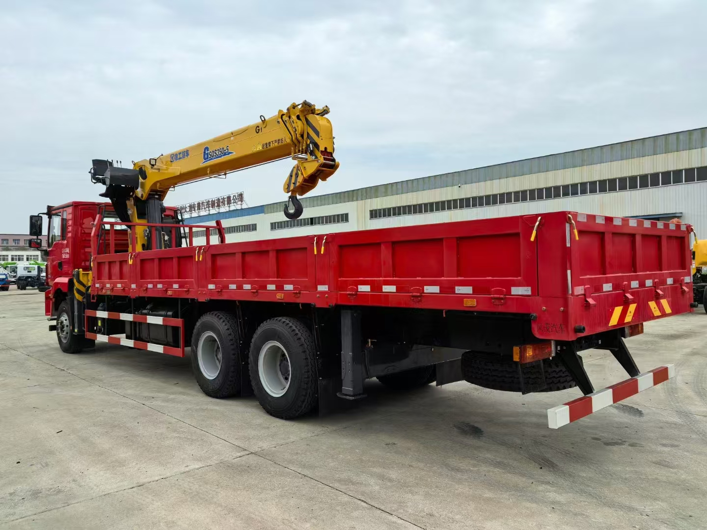 上装徐工G系列14吨五节直臂吊机GSQS350-5,双联泵,双节复合前支腿,臂长19.6米,徐工液压单腔后支腿。