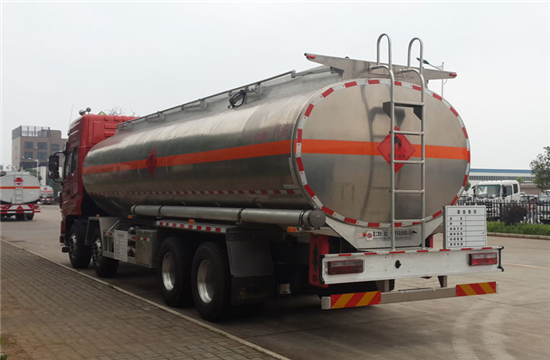 1,该车适用于危险品运输。2,运输介质:汽油,密度为: 0.7吨/立方米,类项号:3;罐体有效容积:26.5立方米, 罐体外形尺寸(长×长轴×短轴)(mm)为:8900×2450×1750。3,随底盘选装驾驶室.侧,后防护装置材料材质为Q235,侧,后防护装置与大梁用螺栓联接.后防护断面尺寸(宽×高)50×110(mm),离地高度为480mm。4,安装具有卫星定位功能的行驶记录仪, 仅采用该底盘子午线轮胎及前盘制动器,ABS系统生产厂家:浙江万安科技股份有限公司,型号:VIEABS-Ⅱ.。5,车辆颜色和文字喷涂位置可变化。