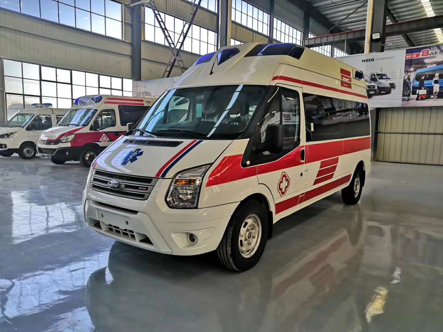 选装高顶,选装机械踏板或电动踏板,选装号牌板支架,选装顶部标志灯结构; ABS系统控制器型号: 6C11 2M110 A*或CC11 2C405 A*,生产厂家:博世汽车部件(苏州)有限公司;车内装置药柜、担架、氧气瓶等专用装置,用于患者急救和运输.选装车辆外观. |