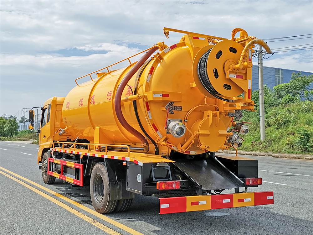 | 整车说明: | 1.该车专用装置由污水罐和清水罐组成,用于下水道排污及疏通;2.随底盘选装驾驶室;3.选用4200,4500,4700轴距底盘改装,整车长/前悬/轴距/后悬对应关系为(mm):8450/1400(1430)/4200/2850(2820),8750/1400(1430)/4500/2850(2820),8950/1400(1430)/4700/2850(2820),9150/1400(1430)/4700/3050(3020);4.罐体外形尺寸为(直段长×直径)(mm):5200×1850,罐体前半段为清水罐,清水罐(直线段长×直径)(mm):2200×1850,罐体总容量:6.11立方米,罐体有效容积:5.82立方米;罐体后半段为污水罐,污水罐(直线段长×直径)(mm):3000×1850,罐体总容量:7.64立方米,罐体有效容积:7.28立方米,吸污罐和水罐为两个独立容器,不能同时满载,罐体可举升;5.防护材料:Q235A碳钢,连接方式:左右侧面及后下部防护均采用焊接连接,后部防护断面尺寸(mm):220×50,后部防护离地高度(mm):420;6.ABS型号/生产厂家:3631010-C2000/东科克诺尔商用车制动系统(十堰)有限公司,ABS 8/东科克诺尔商用车制动系统(十堰)有限公司, 4460046450/威伯科汽车控制系统()有限公司,J ABS/焦作博瑞克控制技术有限公司;选装后部图片,选装后小盖开启用于下水道排污及疏通;选装新型外观样式,选装左侧是水循环泵,右侧油水分离器; 选装后部卷盘样式,选装后盖液压锁紧装置. | ||
