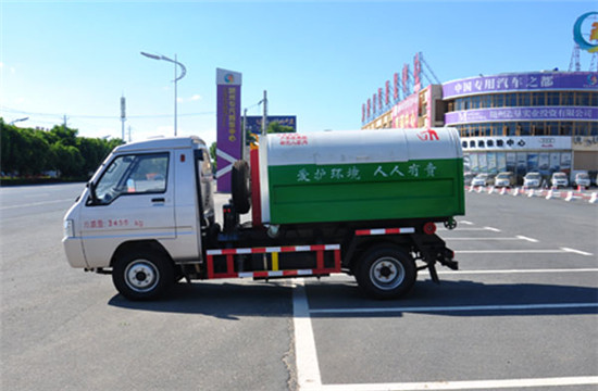 东风小型勾臂式垃圾车配置:厢容积3立方,轴距2.8米,锡柴80马力、四达68马力柴油机,600轮胎。 勾臂式垃圾车一车配多个垃圾箱,机动性强、效率高、降低运输费用。液压系统通过发动机取力,不需另配起重设置,节约成本;带自卸功能,倾卸垃圾方便。勾臂式垃圾车是我们销售最好的车型,主要用于市政环卫收集、运 输城市各种垃圾,尤其适用于收集、运输小区、居委会、城市街道的生活垃圾。