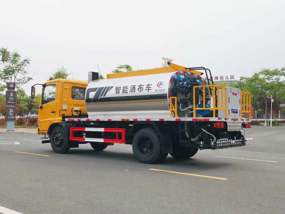 CLW5121GLQD6智能型沥青洒布车是一种专业洒布乳化沥青、稀释沥青、热沥青、高粘度改性 等沥青的半自动化高科技产品。用于修筑高等级公路沥青路面底层的透层油、防水层、粘结 层的洒布。该洒布车由汽车底盘、沥青罐体、沥青泵送及喷洒系统、导热油加热系统、液压 系统、燃烧系统、控制系统、气动系统、操作平台构成。该车操作简便,在吸收国内外同类 产品各项技术的基础上,增加了确保施工的质量技术含量和突出改善施工条件、施工环境的 人性化设计。其合理可靠的设计确保了沥青的洒布均匀度,计算机控制稳定可靠,整车技术 性能已达到世界先进水平。该车经过我公司各方面的改善可以在更恶劣的条件下进行工作