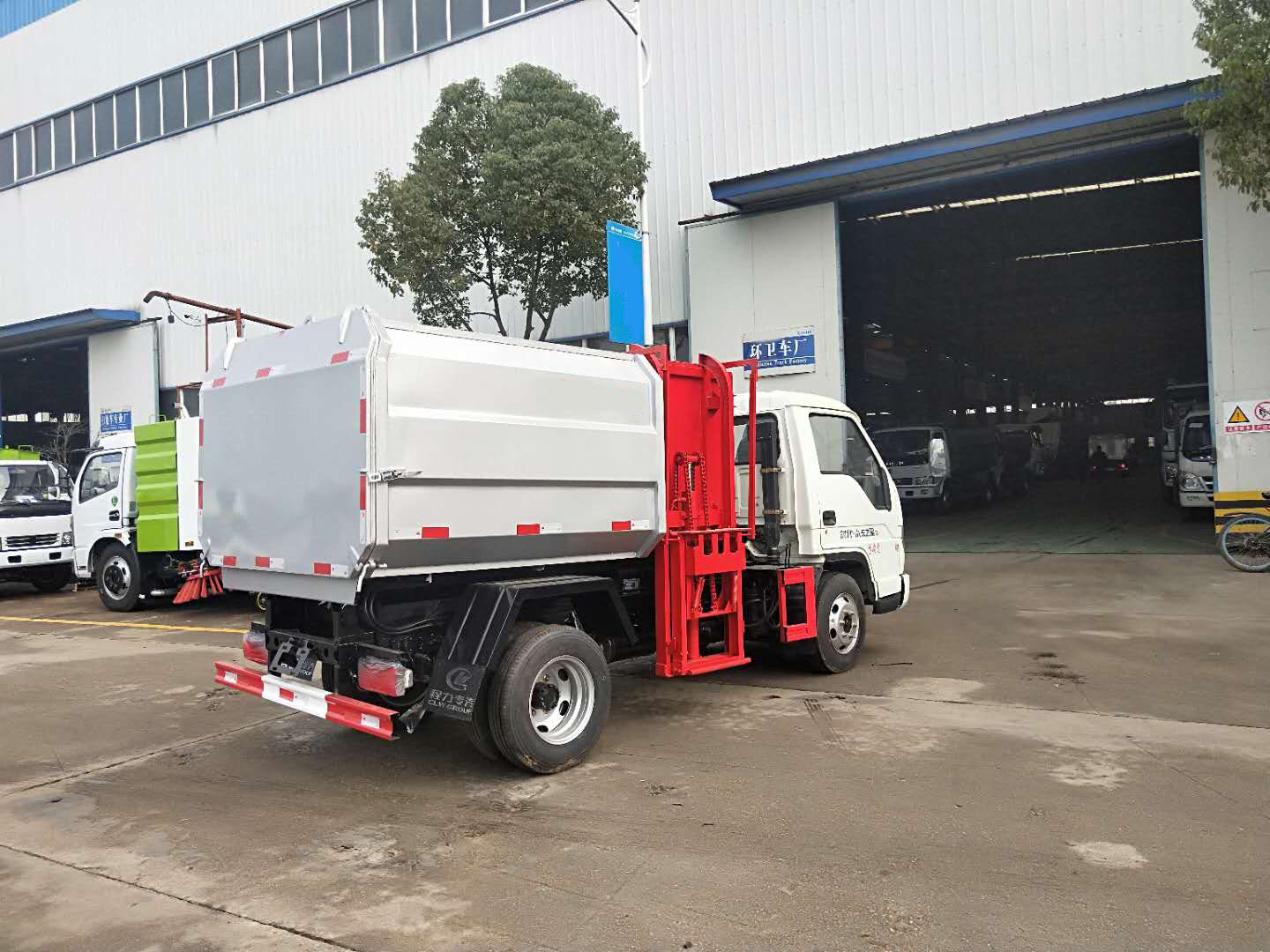 | 整车说明: | 1.专用装置:挂桶机构和箱体,主要用于垃圾的收集和转运;2.随底盘选装新前格栅及新logo.选装新前围;选装箱体外形结构,选装挂桶机构,液压后门锁紧;3.侧,后防护材料均为Q235,连接方式为焊接加螺栓连接,后部防护断面尺寸(mm):120×60,离地高度400mm;4.发动机型号/油耗(L/100km)对应关系:Q23-115E60/11.4,Q23-115C60/11.3;5.ABS系统控制方式为4S/4M,ABS型号为CM4XL-4S/4M,生产厂家为广州瑞立科密汽车电子股份有限公司 | ||