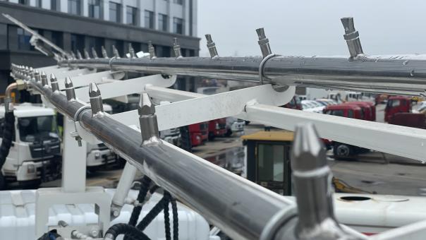 万向前冲、后洒、S型洒水高炮、消防接口、罐体防腐、侧防护、爬梯、后置工作平台、吸水管。 |