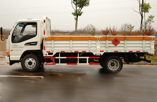 1、车辆类型为AT型车辆。运输介质:具有独立容器包装的易燃气体气瓶,类项号:2.1;选装具有独立包装的非易燃无毒气体的气瓶,类项号:2.2;2、该底盘排气管前置,安装前盘式制动器,限速装置限速80km/h,安装具有卫星定位功能的行驶记录仪,仅选用子午线轮胎;3、ABS系统控制器型号/生产厂家:CM4XL-4S/4M/广州科密汽车电子控制技术股份有限公司;4、防护装置材料:侧面防护及后下部防护装置材料材质:冷弯型钢/Q235,连接方式:焊接加螺栓连接,后下部防护装置截面尺寸100mm×40mm,离地高度520mm;5、选装高栏板,栏板高度为1300mm;6、WP3Q130E50发动机油耗为 20